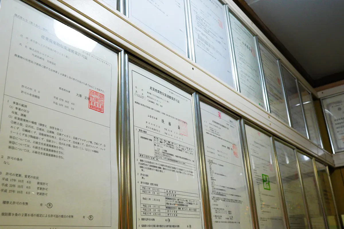 当社は東京都をはじめとする複数の自治体で産業廃棄物処理業の収集運搬・処分許可を取得しており、幅広い地域で安心してご依頼いただけます。当社では環境関連法規に精通した専門担当者が常に最新情報をキャッチアップし、マニフェスト(産業廃棄物管理票)の発行・管理や、適正な契約書類の取り交わしを徹底しています。また、全スタッフに対して定期的な安全教育と現場研修を実施し、作業現場での事故防止・環境リスク低減にも全力で取り組んでいます。